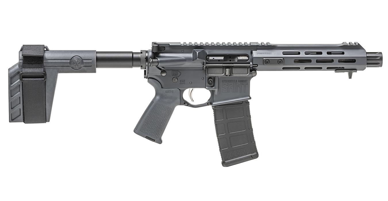 With the new SAINT AR-15 Pistol, Springfield Armory brings the same impact of its SAINT platform to a whole new category. The SAINT Pistol is highly capable and upgraded out of the box but in stock-free pistol form. Instead of a rifle buttstock, the new SAINT AR-15 Pistol features a rugged SB Tactical SBX-K forearm brace to reduce size, stabilize recoil, and enhance accuracy in one or two-hand