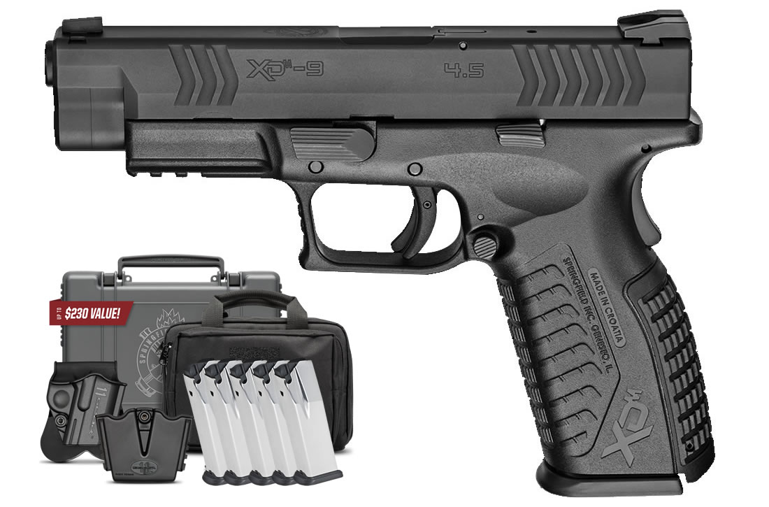 Springfield XDM 9Mm 4.5 Full-Size Instant Gear Up Package With 5 Mags, Range Bag, Holster, M